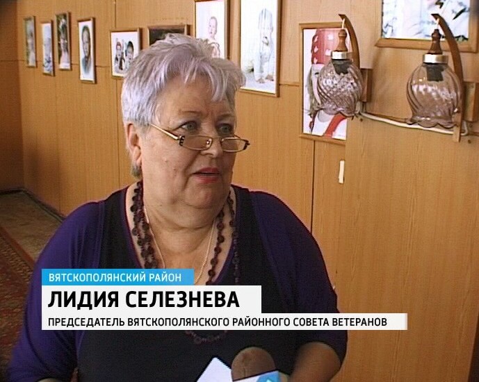 ЛИДИЯ СЕЛЕЗНЕВА, ПРЕДСЕДАТЕЛЬ ВЯТСКОПОЛЯНСКОГО РАЙОННОГО СОВЕТА ВЕТЕРАНОВ: «Да, действительно, я считаю, это - самое главное. И ту эстафету мы должны и подхватить, и пронести с достоинством, чтобы впоследствии и о нас, уже о сегодняшних ветеранах, говорили наши дети, наши внуки, какие мы были молодцы».