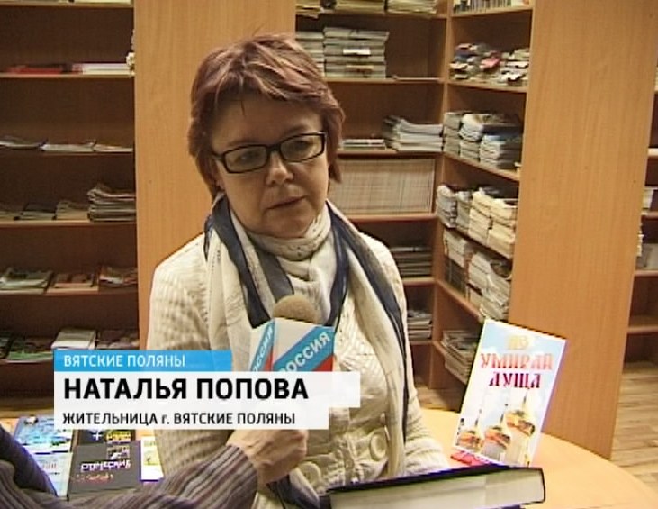 НАТАЛЬЯ ПОПОВА, ЖИТЕЛЬНИЦА г. ВЯТСКИЕ ПОЛЯНЫ: «Я посещаю Никольский храм, поэтому знакома с духовной литературой, и многое меня здесь заинтересовало. Нахожу ответы на некоторые вопросы, духовно-нравственные. Поскольку работаю в школе, то для себя, в общем-то, нахожу много нового, что беру на уроки для своих детей».
