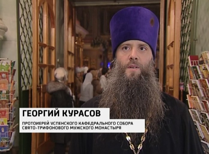 Во время службы священнослужители выносят украшенную свечу. Она символизирует звезду, которая указывала путь волхвам к вертепу, в котором родился Спаситель мира. По преданию, Мария родила младенца в темной пещере. Он лежал на соломе, а Иосиф, вол и ослица согревали его своим дыханием. Так и свершилось великое событие. Кстати, устройство рождественского вертепа - относительно молодая традиция для Трифонова монастыря. С надеждой на чудо сюда тянутся пожилые люди, молодые семьи. Рождество для православного человека, прежде всего, семейный праздник.