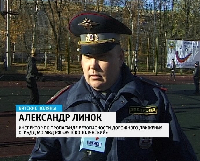 АЛЕКСАНДР ЛИНОК, ИНСПЕКТОР ПО ПРОПАГАНДЕ БЕЗОПАСНОСТИ ДОРОЖНОГО ДВИЖЕНИЯ ОГИБДД МО МВД РФ «ВЯТСКОПОЛЯНСКИЙ»: «Наша цель - это профилактика детского дорожно-транспортного травматизма. В этом турнире участвует большое количество детей, порядка 200 человек. И вот так собрать детей, ещё раз обратиться к ним с призывом о соблюдении Правил Дорожного Движения - это и детям приятно, что турнир проводится, и нам на пользу: дополнительно объяснить и рассказать детям, что Правила дорожного Движения - это не пустяк, и что соблюдать эти Правила нужно».