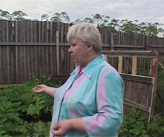 НАТАЛЬЯ РОМАНОВА: «Убираем, убираем, а нет результата-то. Выкапывать пробовали, все равно он как зараза какая-то. Вот здесь у меня теплица стояла, все у меня испортили, потому что этот борщевик невозможно убрать».