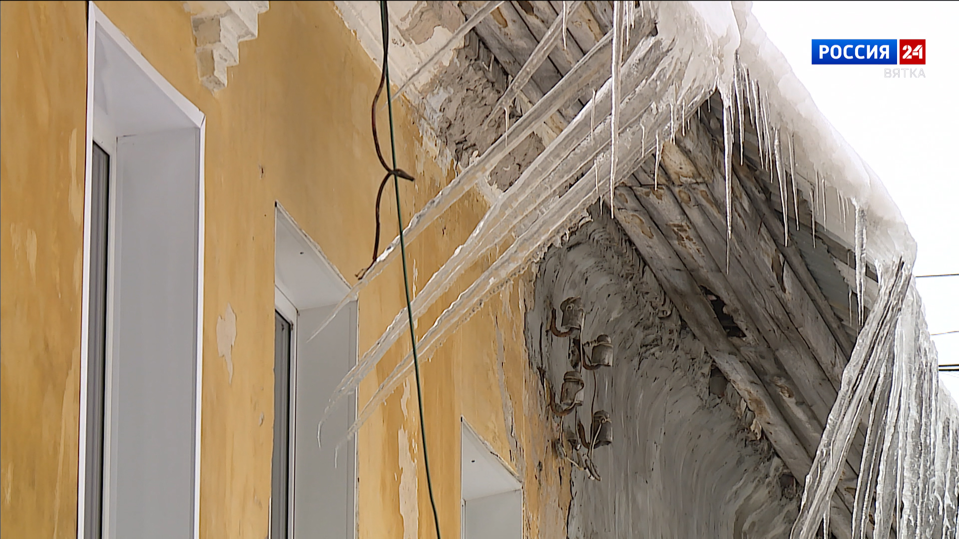 - Вот здесь даже сам снег съезжает, крышу у нас вообще не чистят уже который год. Сосульки у нас не убирают, всё, на нас уже крест видно поставили.