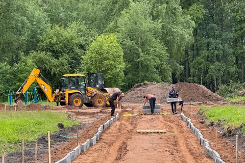 На объекте уже убрали кустарники, спилили аварийные деревья, завезли необходимый материал для укладки бордюров и брусчатки.