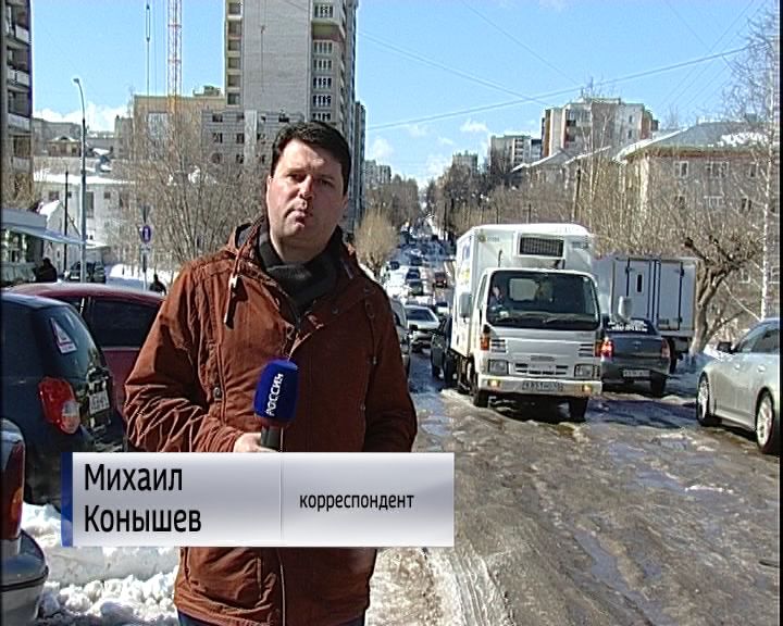 «Мы находимся на улице Розы Люксембург. Здесь автомобильный транспорт движется со скоростью 10-20 км в час. Дорога представляет из себя ледяные наросты и колеи».
