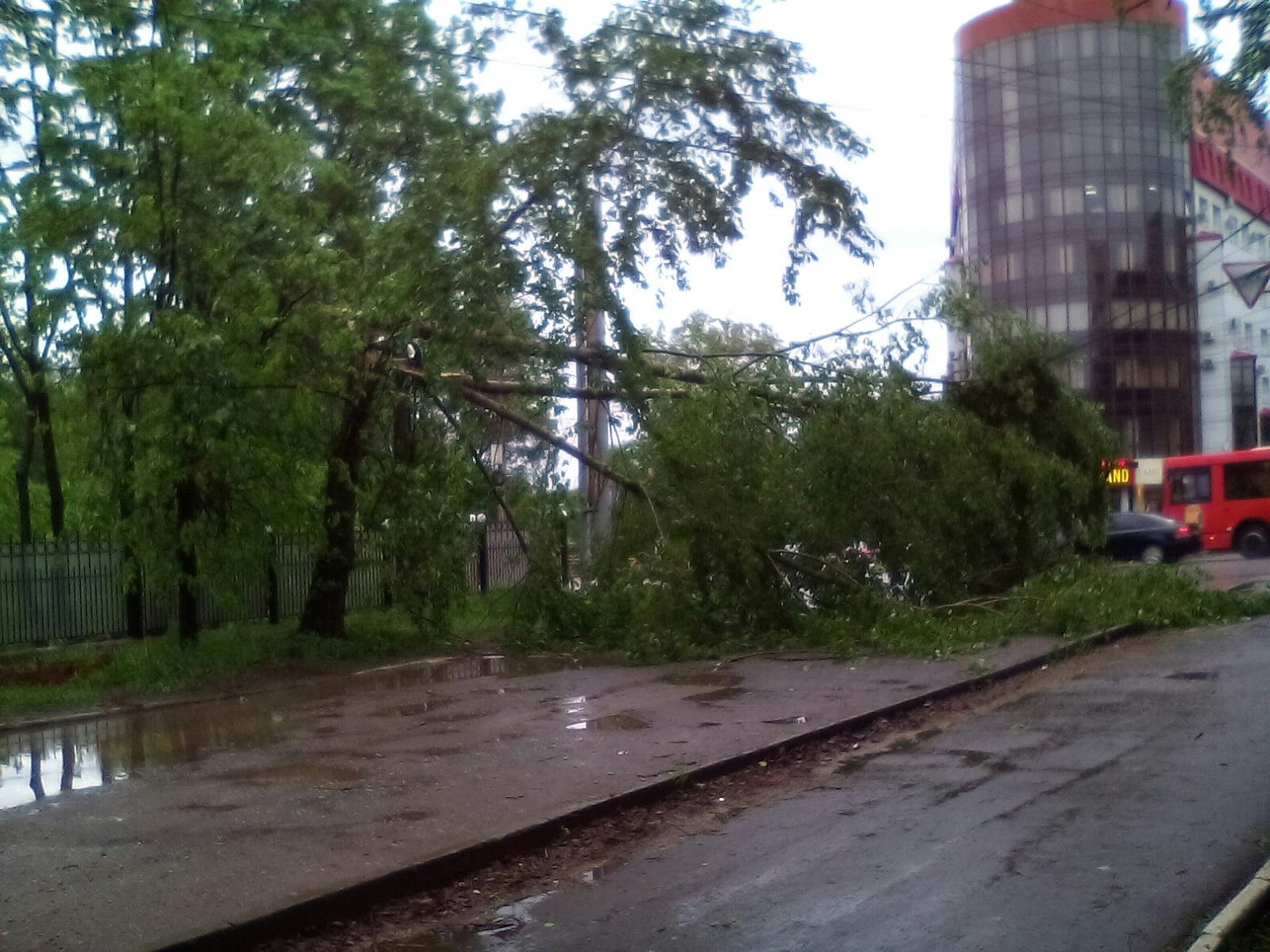 Скорость порывов шквалистого ветра превышала 20 метров в секунду. В результате только в городе было сломано и повалено порядка 60 деревьев.