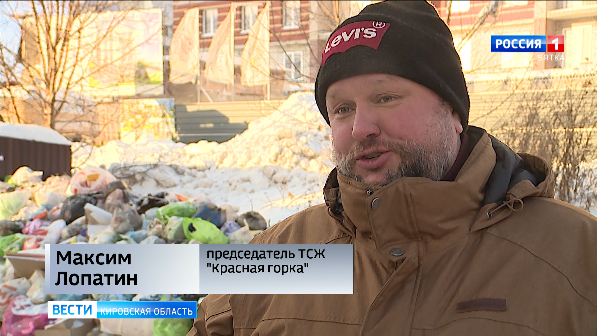 «Эта контейнерная площадка, как мы видим, тоже переполнена мусором. И находится она вблизи министерства экологии и окружающей среды Кировской области».
