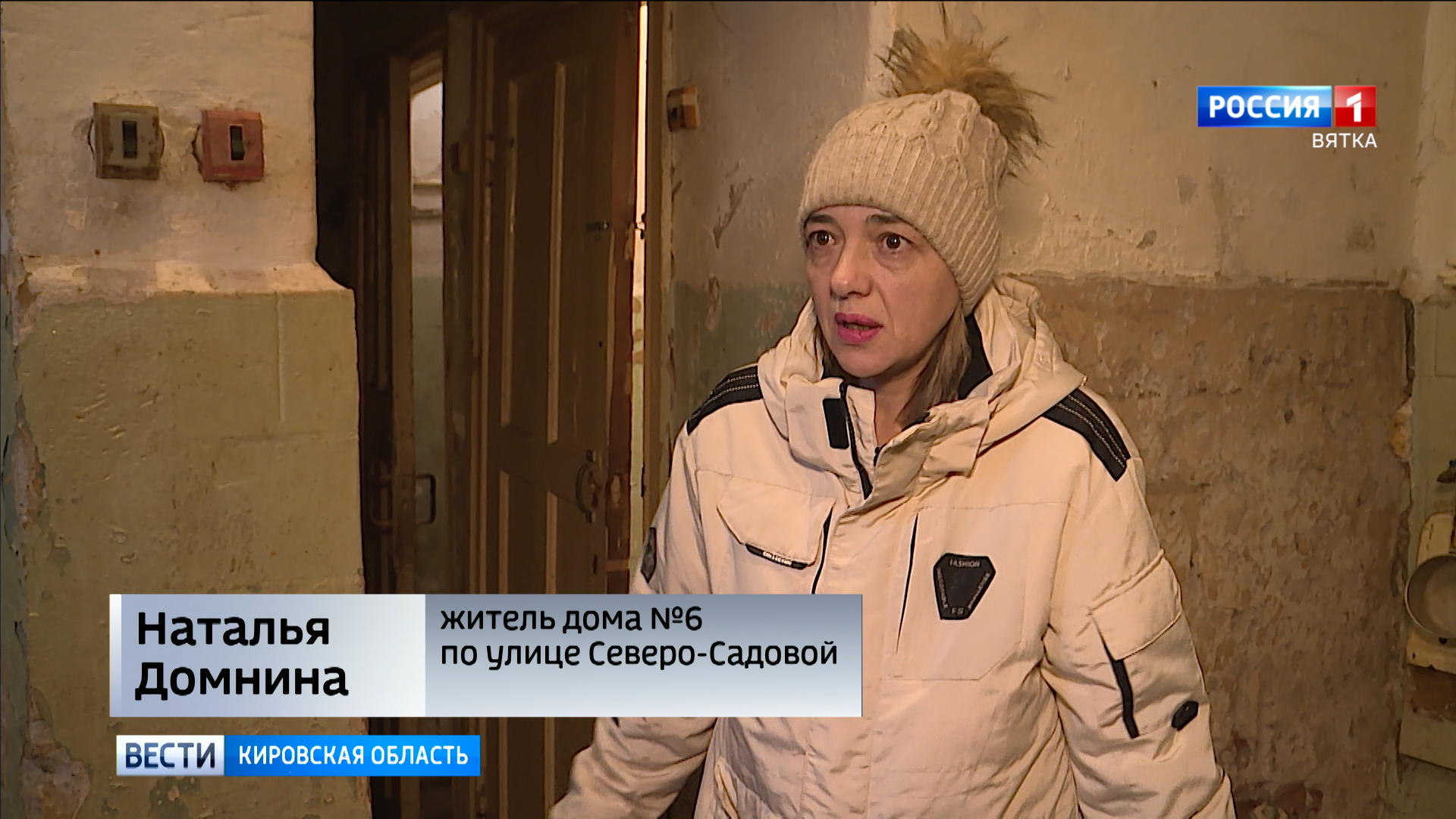«Мы находимся внутри здания, но здесь минусовая температура, я говорю, и изо рта у меня идёт пар. Здесь окно должно быть, оно защищало бы от попадания холодного воздуха, это один момент. Второй момент. Раньше здесь был радиатор, мы подводку видим, то есть радиатор сняли, сделали закольцовку, тепла, естественно, это не отдаёт, здесь минусовая температура, и трубы здесь перемерзают. Трубы проходят по полу, если бы здесь была положительная температура, то этих бы проблем с перемерзанием труб не было».