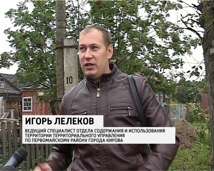 ИГОРЬ ЛЕЛЕКОВ, ВЕДУЩИЙ СПЕЦИАЛИСТ ОТДЕЛА СОДЕРЖАНИЯ И ИСПОЛЬЗОВАНИЯ ТЕРРИТОРИИ ТЕРРИТОРИАЛЬНОГО УПРАВЛЕНИЯ ПО ПЕРВОМАЙСКОМУ РАЙОНУ ГОРОДА КИРОВА: «На землях общего пользования, на прилегающих землях к частным территориям, не должно находиться никаких строительных материалов, ни дров, ни песка, никакого мусора. То есть, граждане должны хранить свое имущество на своей территории, предоставленной им в собственность и никак не располагать их на муниципальных землях. Это, во-первых очень некрасиво, во-вторых это мешает проведению работ, так как здесь проходят водопровод, коммуникации и прочие вещи».