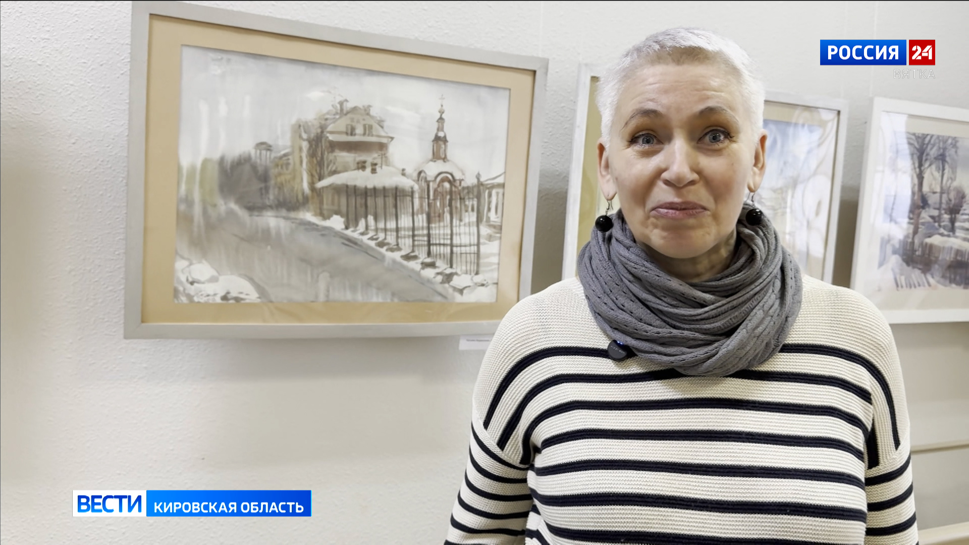 Дополнением к выставке стали акварельные работы кировских художниц. Городские сюжеты выполнены с натуры и передают очарование вятской зимы.