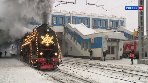 Новый год в Киров приходил, прилетал, приезжал. На необычных машинах, на уникальных поездах. Например, ретро-поезд запустили в том году специально в рамках проекта "Новогодняя столица России".