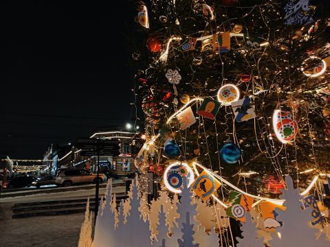 В новогодние праздники елки, установленные в исторической части города Кирова, были украшены игрушками, отправленными из разных городов страны для «Фестиваля елок» на пешеходной улице Спасской.