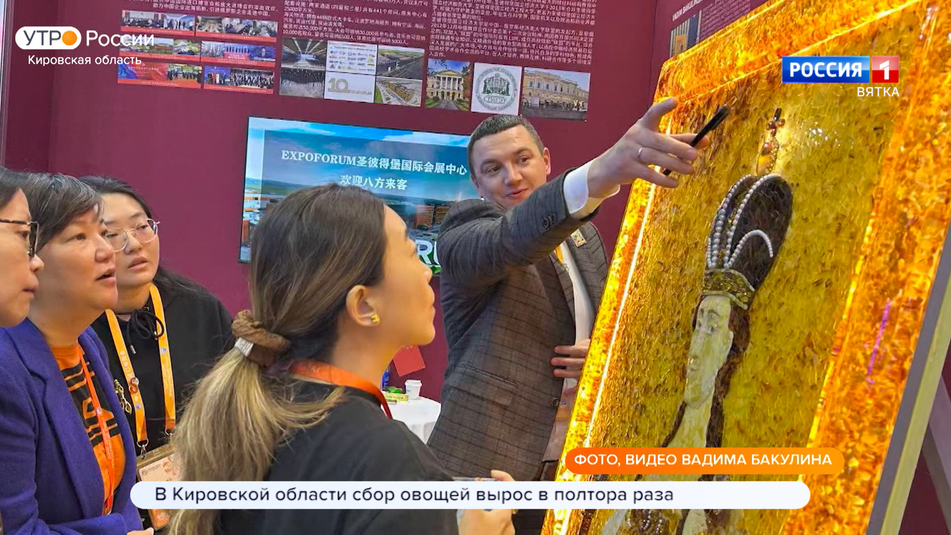 Герой нашего сюжета занимается необычным для нашего региона промыслом - художественной обработкой янтаря. Вадим Бакулин делает из желтого минерала статуэтки и объемные картины. Одну из его работ - портрет Екатерины Великой из янтаря и драгоценных камней презентовали на международной выставке импорта в Китае.