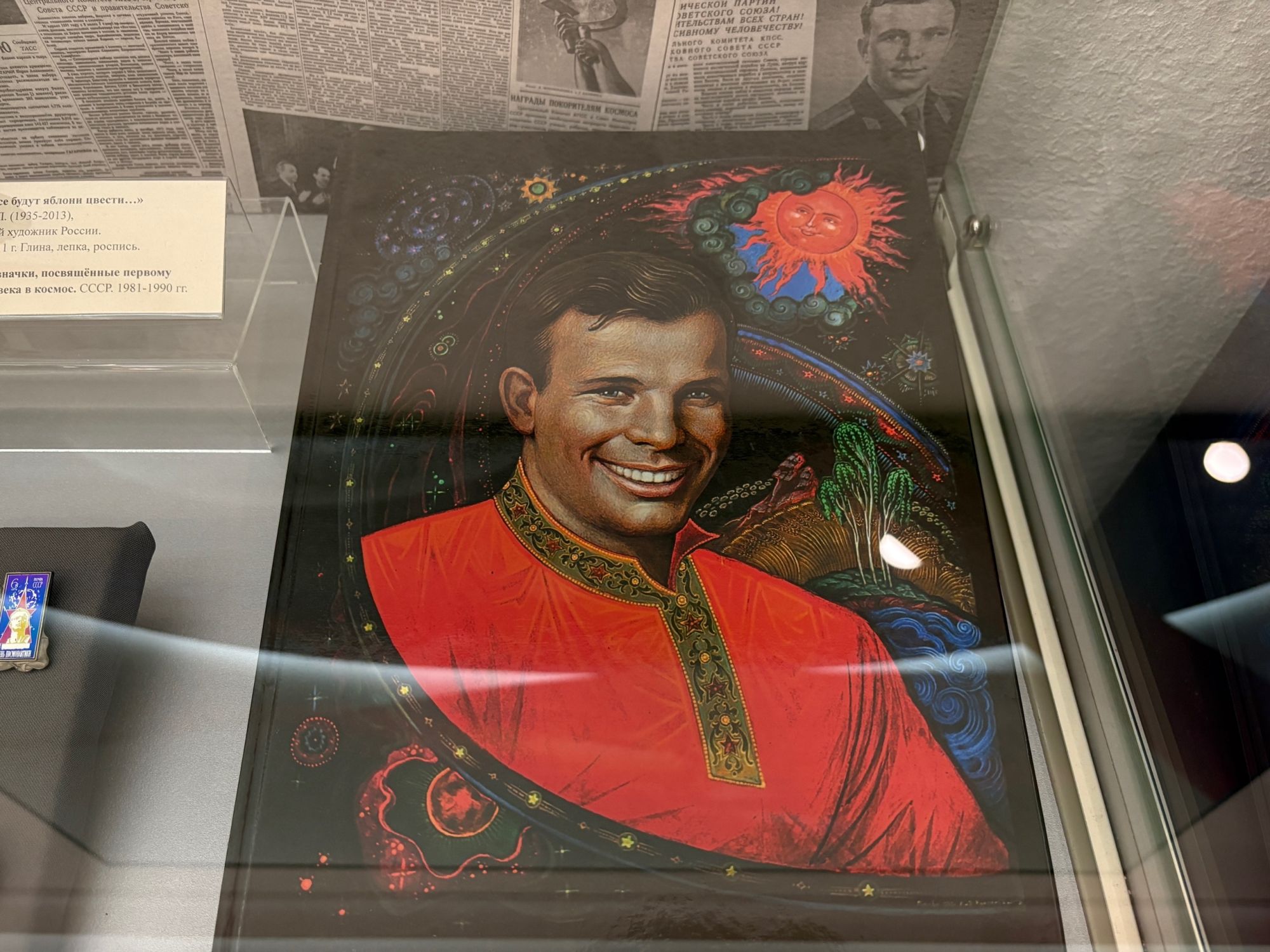 Ещё можно увидеть гироскопический прибор, который использовался на корабле «Восток» – гировертикант и книгу нашего земляка Альберта Лиханова «Сын России» 2021 года – оригинальный художественный проект знаменитого писателя с мастерами палехской росписи. Он стал последним прижизненным изданием автора.