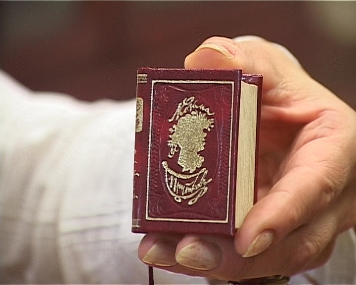 Предпочтение долгое время отдавалось поэзии, как наиболее удобной форме для печати в миниатюрном формате. В коллекции библиотеки есть уникальные издания, где в игрушечной по размерам книге есть все, что положено иметь большому серьезному изданию - фронтиспис, суперобложка, концовки и заставки. К некоторым книгам прилагается лупа - чтобы было удобней читать. На выставке представлены и факсимильные издания пушкинского Евгения Онегина и книга басен Крылова.
