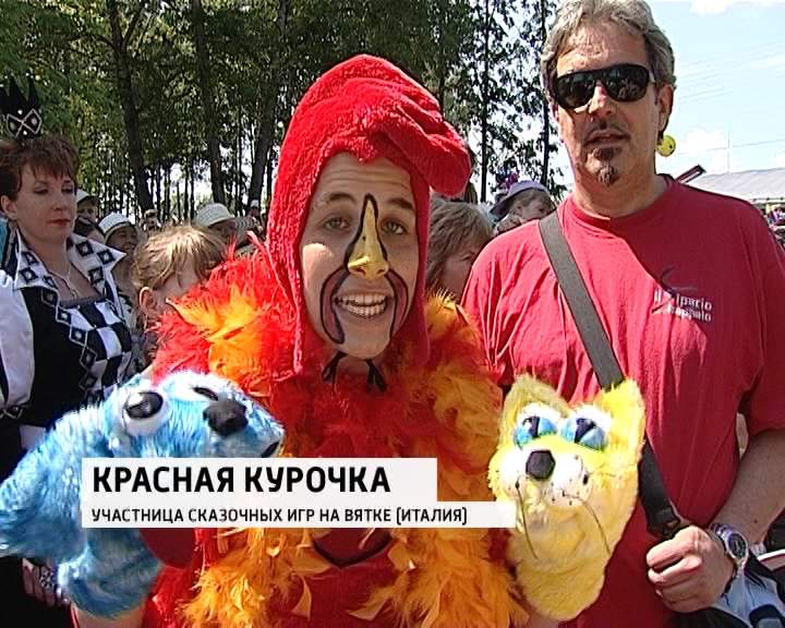 В этом году в Сказочных играх на Вятке приняло участие рекордное количество персонажей - сорок семь. Кого тут только нет - снеговик из Архангельска, колобок, Шахматная королева из Орлова, барон Мюнхгаузен, который исполнил для детей известную песню.