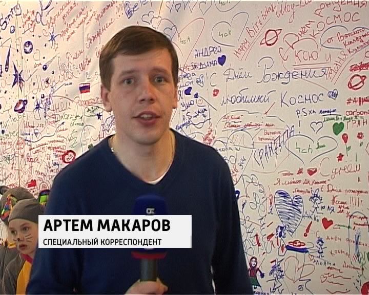 «ДК Космос сегодня получил сотни поздравлений. Причем не только от официальных лиц, здесь возле входа в главный зал, располагается баннер, на котором свое поздравление может оставить каждый желающий. Вот и мы решили не "отставать" от праздника, и тоже поздравить ДК Космос с днем рождения».