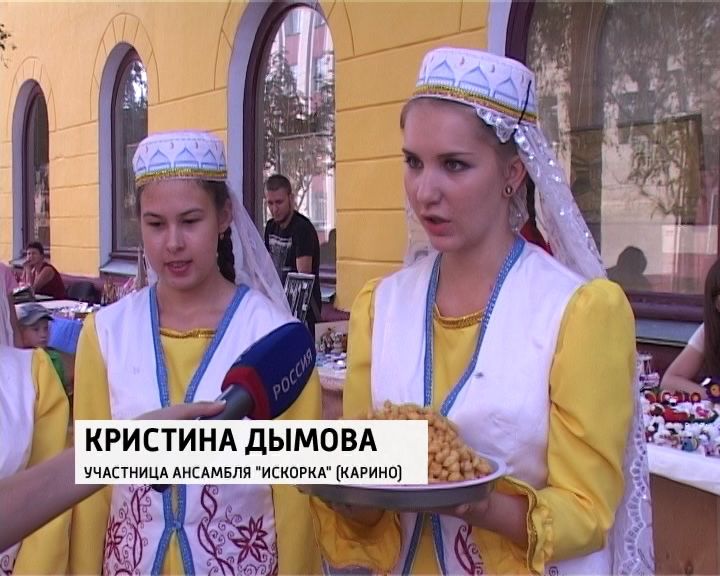 Первыми выступили девушки из ансамбля с зажигательным названием "Искорка". Татарский танец называется "Вкусные хлопоты". Национальное блюдо - "чепчеге", или сладкий торт, они приготовили специально для него. Отчасти национальной тематике был посвящен и арт-маркет. Здесь жители города могли увидеть изделия ручной работы: украшения, сувениры и даже детские игрушки из природных материалов. Их Сергей привез из Котельничского района. Мастер состоит в творческом объединении при Музее истории крестьянства.