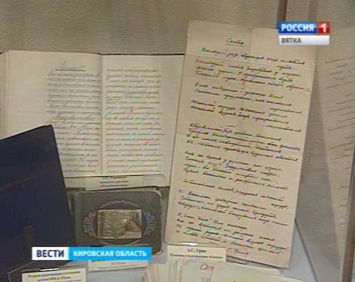 Когда-то также выводил буквы и Александр Грин, записывая свое стихотворение "Снопы". Этот экспонат - из фондов музея, а "Клуб авторской рукописной книги в Вятке" представил свои произведения и издания авторов из Москвы и Санкт-Петербурга. Книга путешественника и книга художника. Книжка-гармошка - с вятскими частушками, и берестяная книжка - с любимой сказкой.