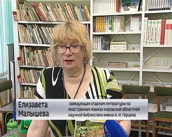 ЕЛИЗАВЕТА МАЛЫШЕВА, ЗАВЕДУЮЩАЯ ОТДЕЛОМ ЛИТЕРАТУРЫ НА ИНОСТРАННЫХ ЯЗЫКАХ КИРОВСКОЙ ОБЛАСТНОЙ НАУЧНОЙ БИБЛИОТЕКИ ИМЕНИ А. И. ГЕРЦЕНА: