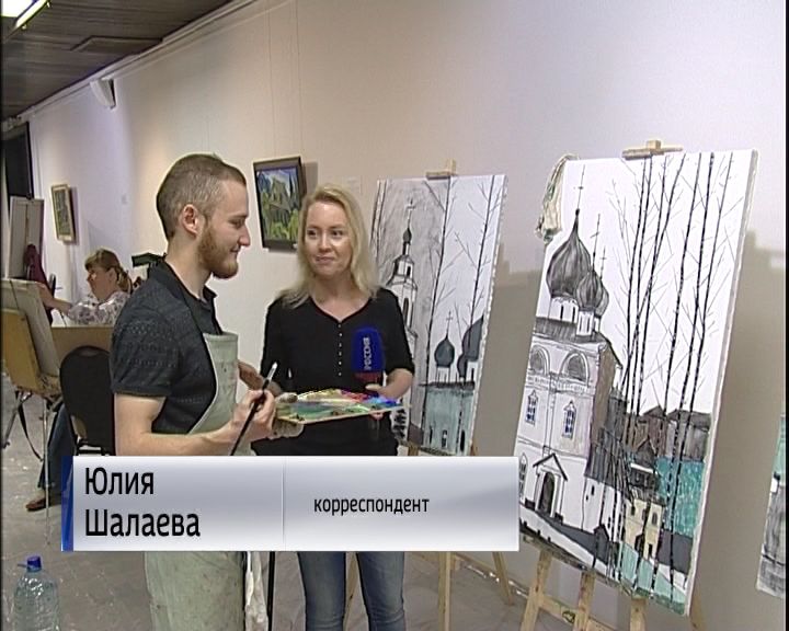 В стенах Вятского художественного музея собрались 15-ть художников. Все они в течение пяти дней будут писать картины на глазах у посетителей. Увидеть можно все стадии создания живописного полотна. Мастера работают в разных техниках, но в одной теме - на холсте должно появиться что-то наше, вятское. Сергей Горбачёв в качестве объекта выбрал образ Александра Грина - писатель у него стоит в профиль и загадочно смотрит вдаль.