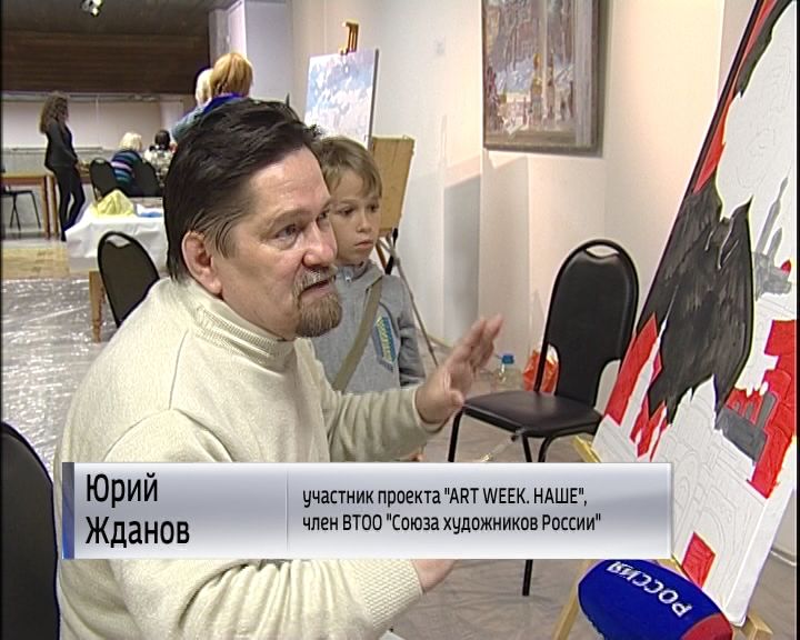 «У зрителей есть возможность внести свою лепту в создание художественного произведения. Сергей позволяет любому желающему сделать мазок на своей работе. Давайте попробуем».