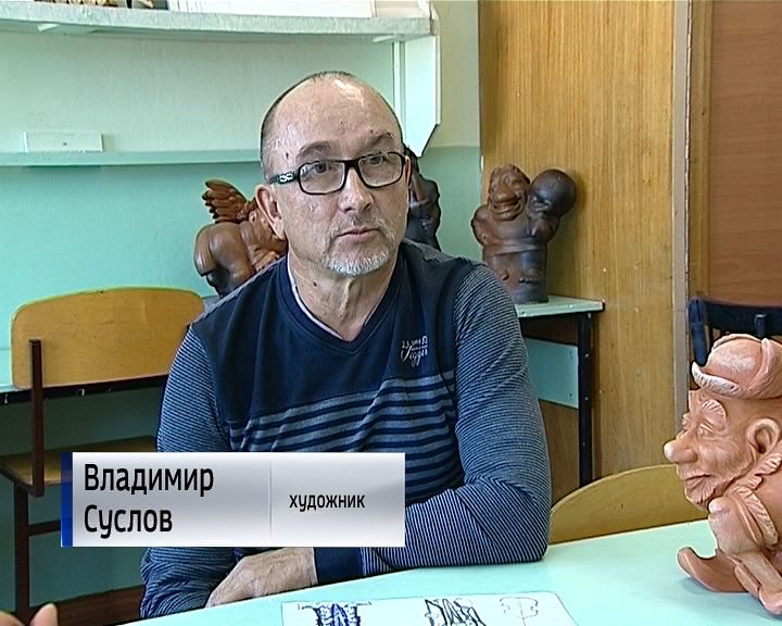 В школе искусств в Советске художник работает до сих пор. В 96-м году Владимир Суслов начал лепить из глины. Работать с таким материалом непросто. Дня три-четыре, потом глина засыхает, и появляются трещины. Но начинать, конечно же, необходимо с эскиза на бумаге. Одна из основных тем произведений Владимира Суслова - это простые вятские мужики.