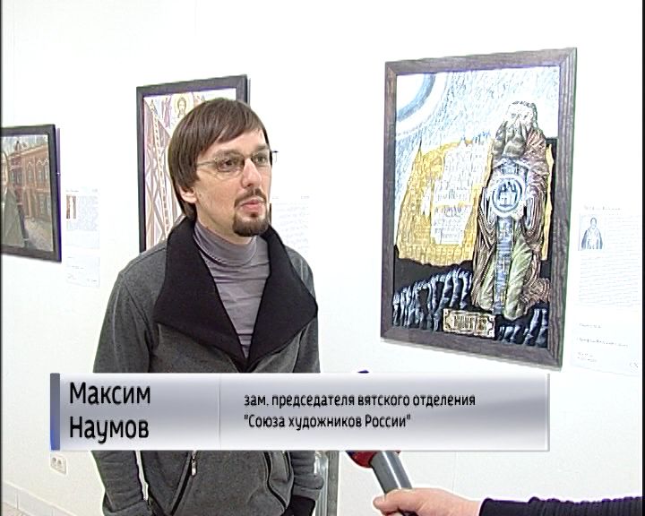 Константин Циолковский задумчиво любуется звездным небом. Наверное, грезит полетом, а в другом углу, человек, который воплотил мечту в реальность - Виктор Савиных. Выставка "Вятка в лицах" - это разговор и об истории и об искусстве. Художник Максим Наумов специально для выставки написал портрет Трифона Вятского. Его вдохновил образ святого, исполненный в бронзе.