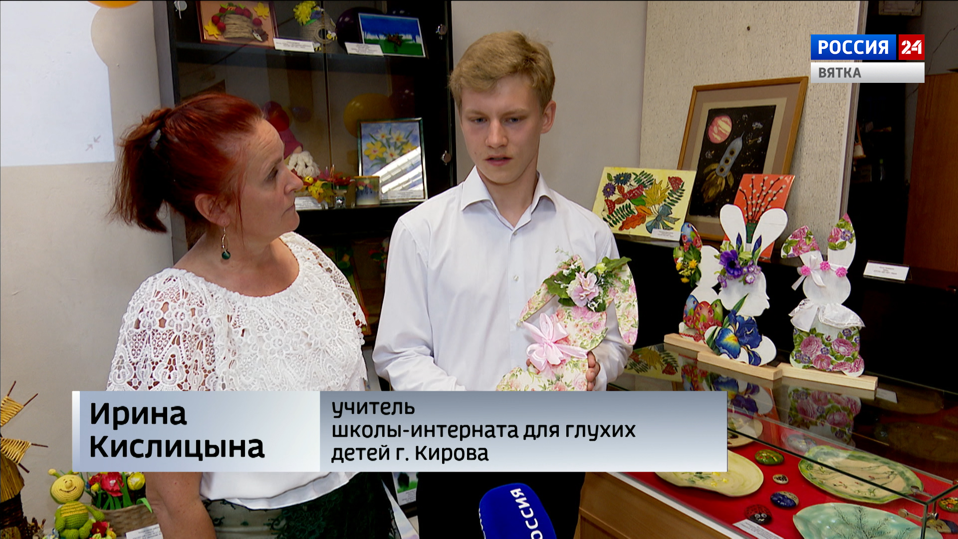 Эта выставка - важный ежегодный социальный проект. Детям-инвалидам дают возможность показать свое творчество в музейном пространстве. Здесь представлены работы воспитанников кировских клубов, школ интернатов и детских домов. Активный участник проекта - школа-интернат для глухих детей. Её ученик, Антон Еременко, на уроках труда вручную выпиливал пасхальных зайцев, а затем украсил их цветами и лентами.