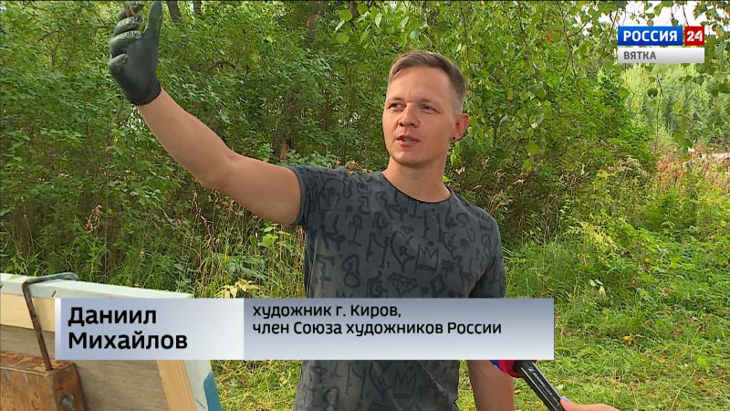 ДАНИИЛ МИХАЙЛОВ, ЧЛЕН СОЮЗА ХУДОЖНИКОВ РОССИИ, ХУДОЖНИК Г. КИРОВ:«Здесь был интересный свет в контражуре. Солнце светило с той стороны, а деревья оставались в тени, но их края абрисом давали силуэт. Мне понравилось, как сквозь них просвечивает вода, цельным пятном, интересным. И интересные силуэты деревьев сложные, захотелось это попробовать изобразить».