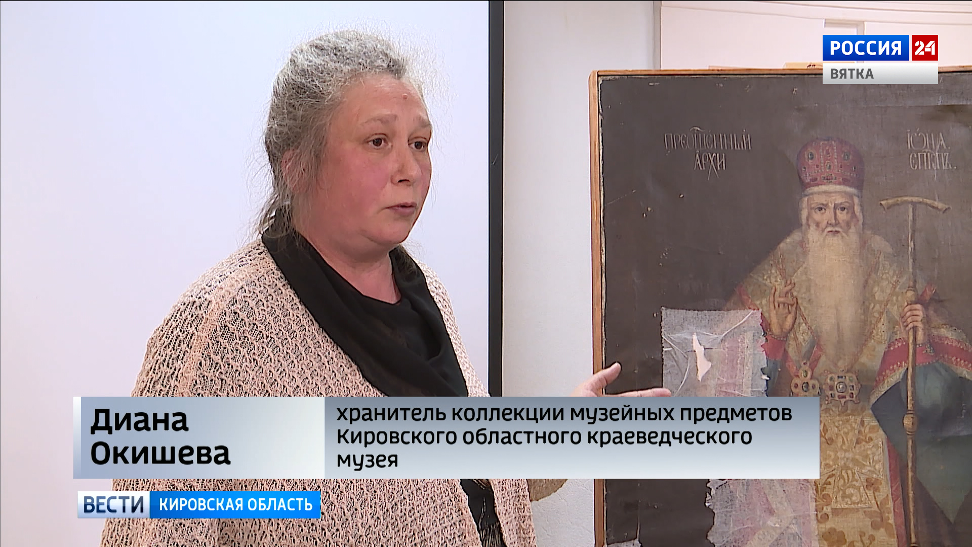 Артем Маркелов, директор Кировского областного краеведческого музея:«Это действительно уникальные портреты, которые по сведениям написаны примерно в 19 веке. Затем после закрытия Вятских храмов, они были чудом сохранены в нашем музее. Такая есть музейная история, что они были спрятаны и обретены уже новым поколением музейщиков, спустя несколько десятилетий».