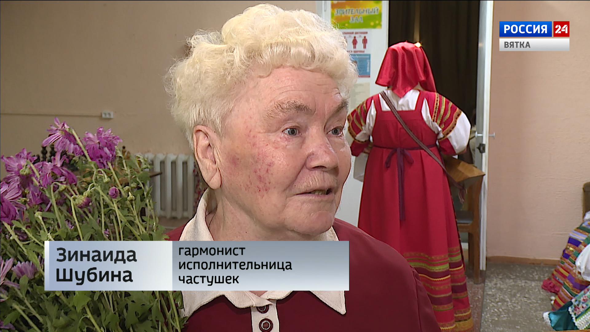 «У меня 4 вида разновидности гармони, это у нас гармонь местного производства "Кирилловская гармонь" , очень прекрасная и ей 42 года, которая сохранилась очень хорошо в моих руках».