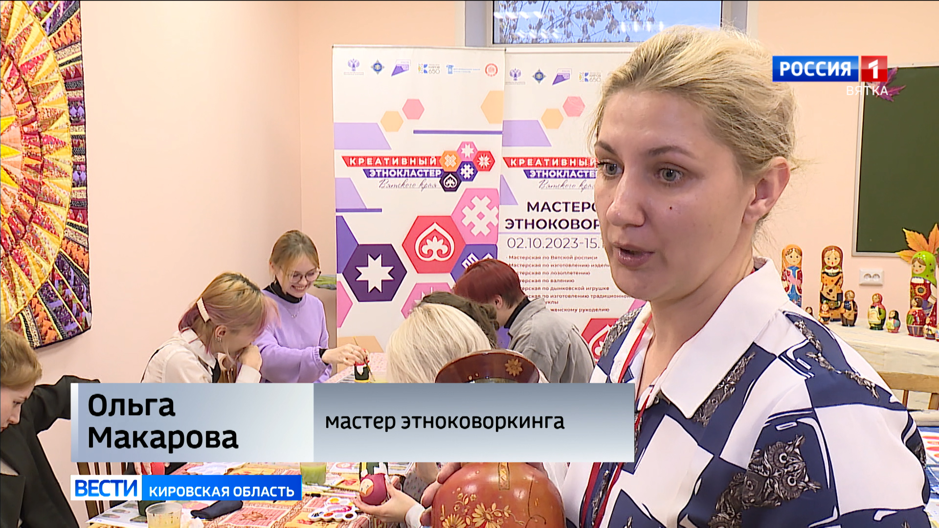 «Каждая площадка креативного этнопространства знакомит посетителей с промыслами вятского края. Мы на мастер-классе росписи кировской матрешки. Поделитесь впечатлениями».