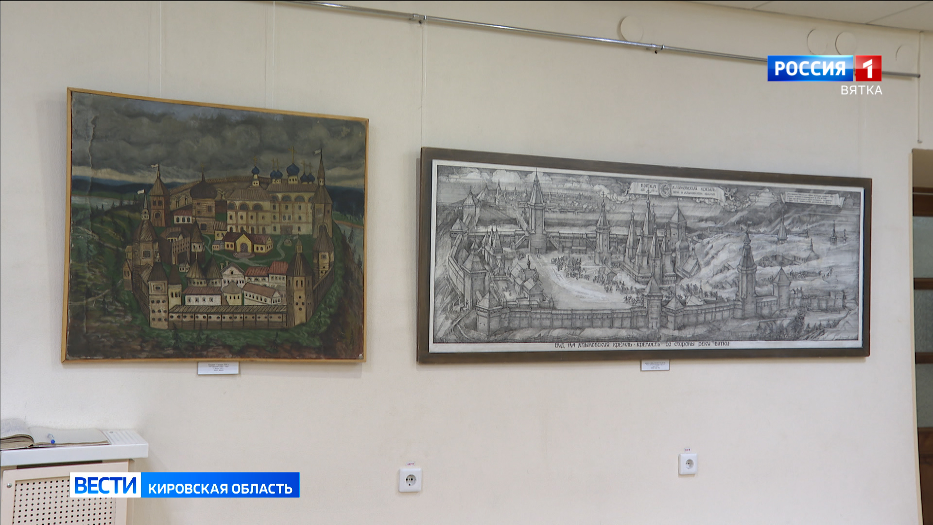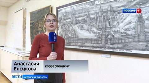 «А погрузиться в прошлое помогут картины кировских художников. Например, здесь мы видим Хлынов и Хлыновский Кремль 14-15 веков».