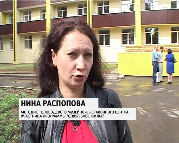Сосновый бор, чистый воздух и пение птиц - здесь чувствуешь себя словно на отдыхе. Многоквартирный дом был реконструирован из бывшего профилактория, после здесь сделали капитальному ремонту. От старого здания остались разве что крепкие стены. Правда, дом должны были сдать еще в начале года, но процесс затянулся. И сегодня Нина Распопова - сотрудница Слободского музейно-выставочного центра, наконец-то впервые заходит в квартиру, полученную по программе "Служебное жилье".
