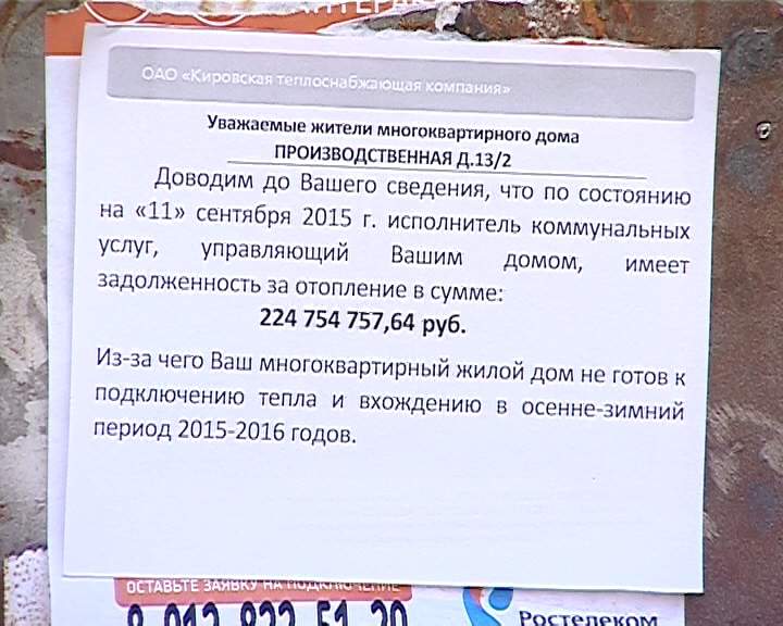 Представители же теплоснабжающей организации такой реакции на свои объявления не ожидали. Ведь по большому счету в них не содержится информации о том, что дома отключат от тепла. Кировчанам не пытались угрожать, они сделали неправильные выводы.