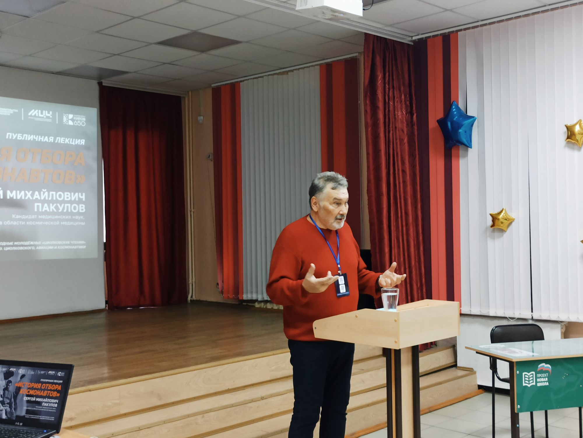 В школе №16 имени Альберта Лиханова в рамках Международных молодежных «Циолковских чтений» прошла публичная лекция с Сергеем Михайловичем Пакуловым «История отбора космонавтов».