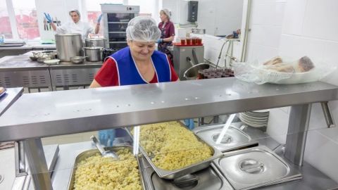 Работники пищеблока поделились с Еленой Васильевной, что в целом оборудования им достаточно, но не хватает пароконвектомата, где готовятся горячие блюда и выпечка.