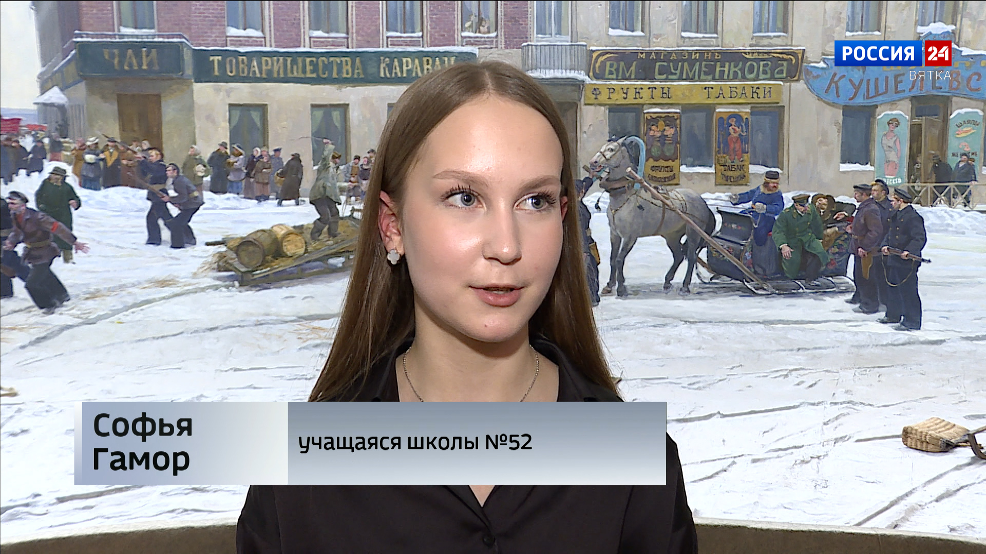 Наушники, смартфон и огромное полотно диорамы. Аудиоспектакль знакомит кировских школьников с событиями столетней давности - вооруженной демонстрацией рабочих и солдат 1го декабря 1917го года, установлением советской власти в Вятке. Об этом рассказывают "ожившие" персонажи полотна Диорамы.