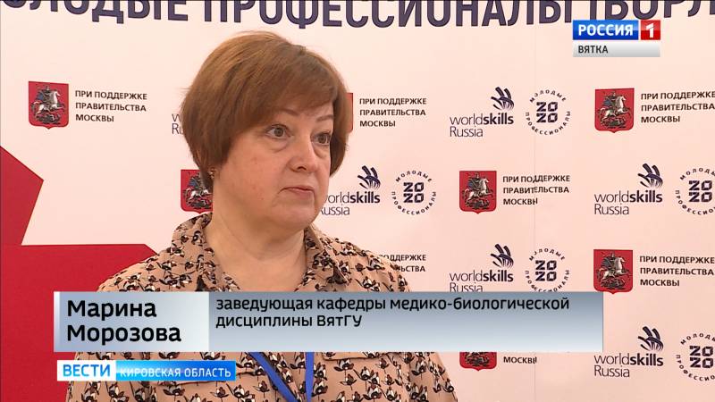 МАРИНА МОРОЗОВА, ЗАВЕДУЮЩАЯ КАФЕДРЫ МЕДИКО-БИОЛОГИЧЕСКОЙ ДИСЦИПЛИНЫ ВЯТГУ:«Во общем-то призовые места занимают те, кто справился с волнением, с ограничением времени. Всем участникам дается мало времени для выполнения задания. И вот сегодня до пяти часов он должен сделать три задания».