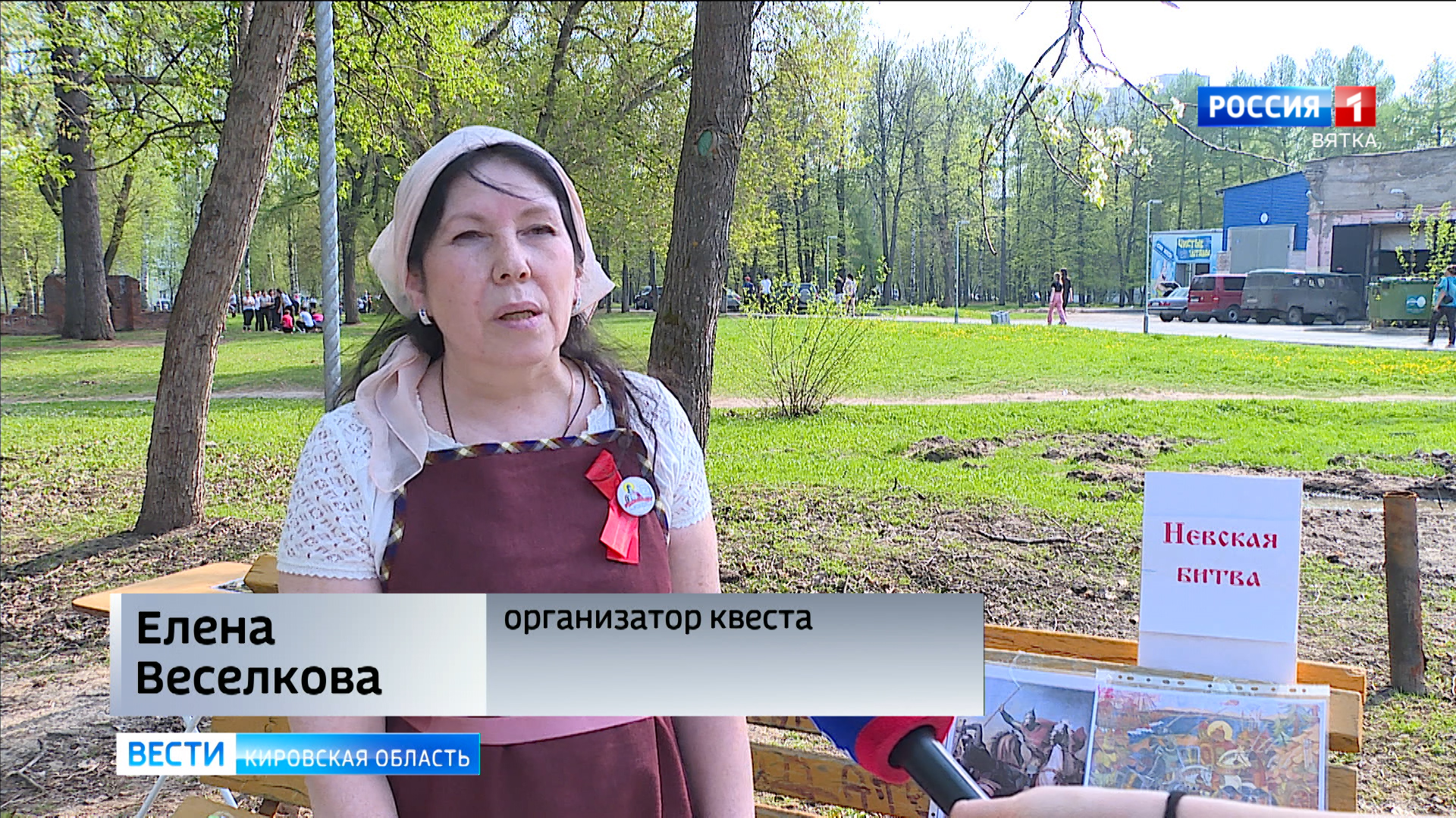 «У нас проходит эстафета, ребята выступают в роли гонцов, где они должны проскакать на лошади в шлеме и донести благие вести в Новгород о том, что произошла победа на Чудском озере».