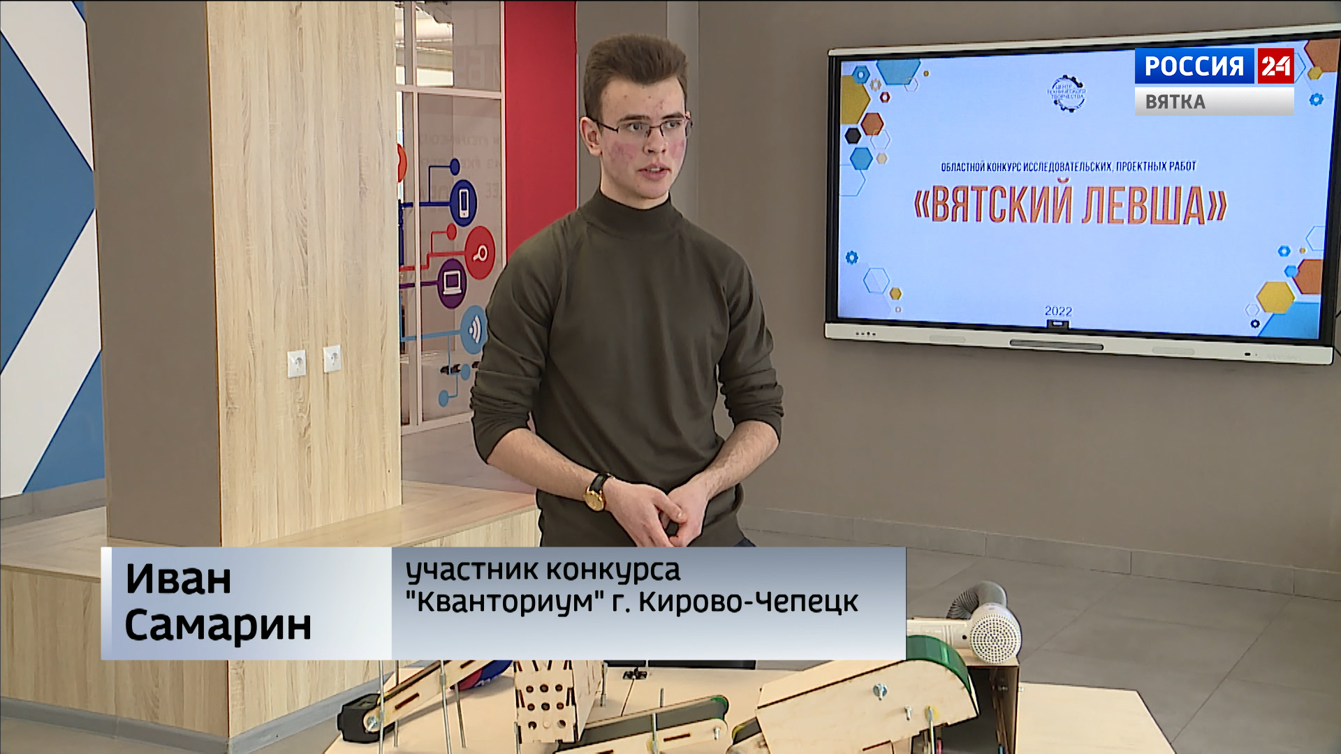 «Конкурс «Вятский левша» проводится у нас уже 11-й раз. Каждый год свои лучшие проекты представляют у нас школьники из кировской области. Победителем становится участник, который набрал наибольшее количество баллов и ему присуждается премия "В поддержку талантливой молодежи"».