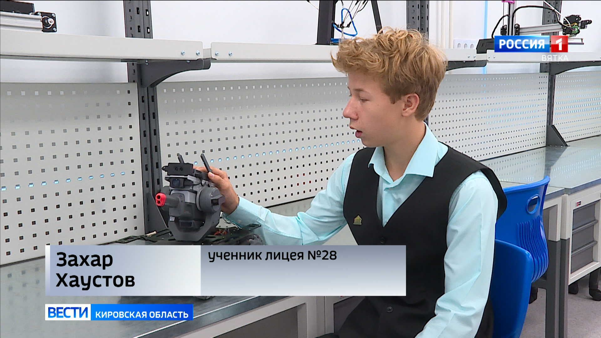 «Сейчас принципиально изменился школьный кабинет, здесь появилась зона только теоретических занятий, и вот то, что за вами находится, это как раз практическая зона, это зона лабораторная, где ребята могут применить свои знания, именно в лабораторных исследованиях».