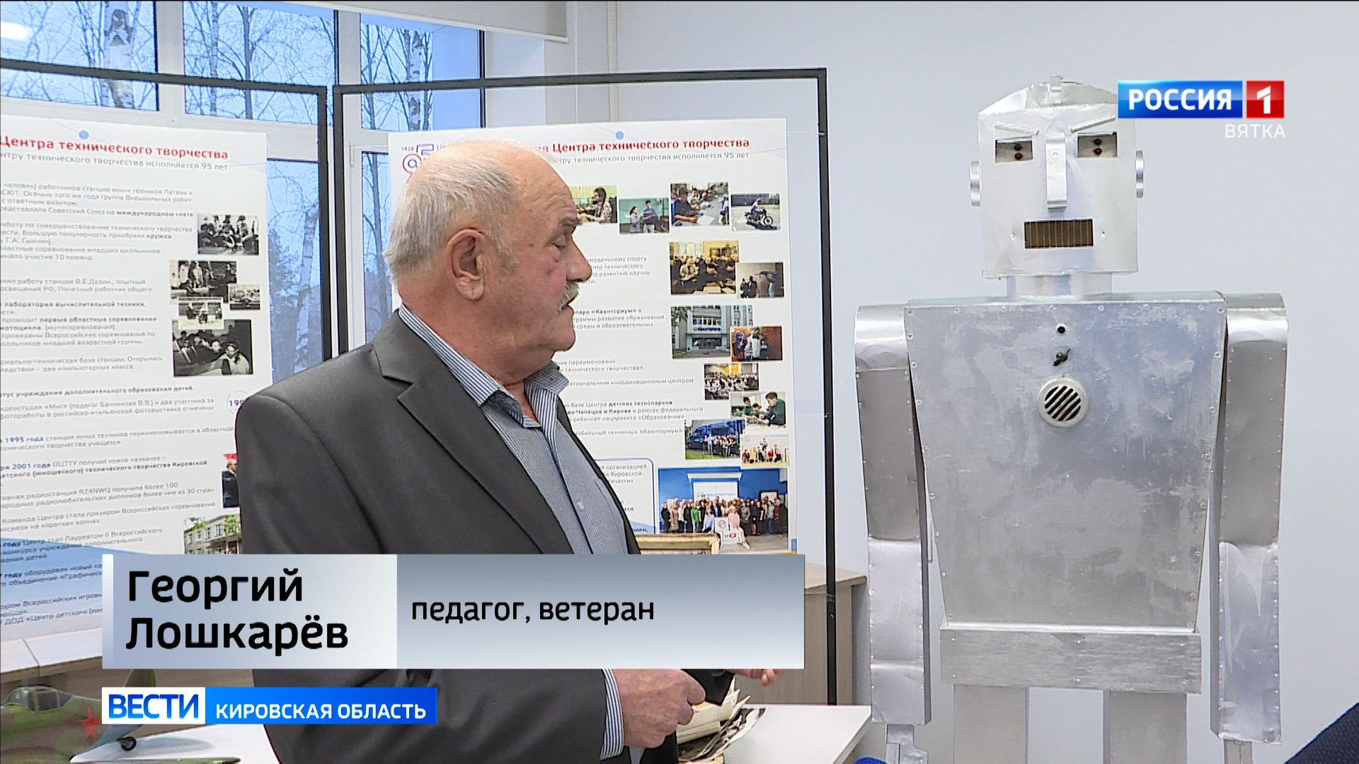 С двух небольших комнат, нескольких слесарных верстаков и комплекта монтажного инструмента начиналась история губернской Детской технической станции в 1928 году. С развитием техники в Советском союзе дети под руководством своих педагогов начали создавать роботов. Именно этот человекоподобный аппарат стал одним из первых экскурсоводов уже в новом здании центра технического творчества в 1970 году. Вместе с учениками его создал Георгий Зиновьевич Лошкарёв. Робот двигался, понимал речь и разговаривал сам.