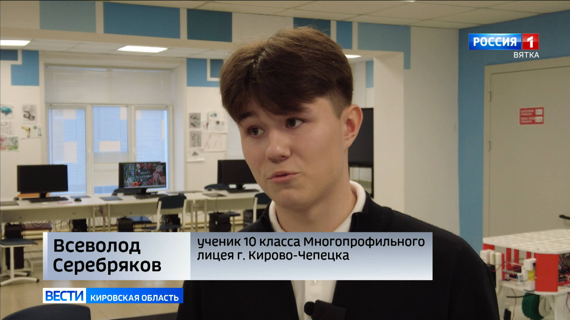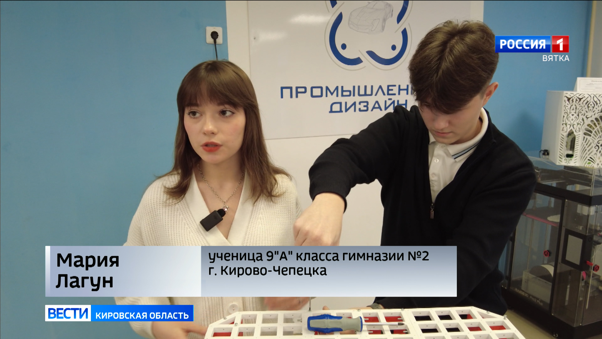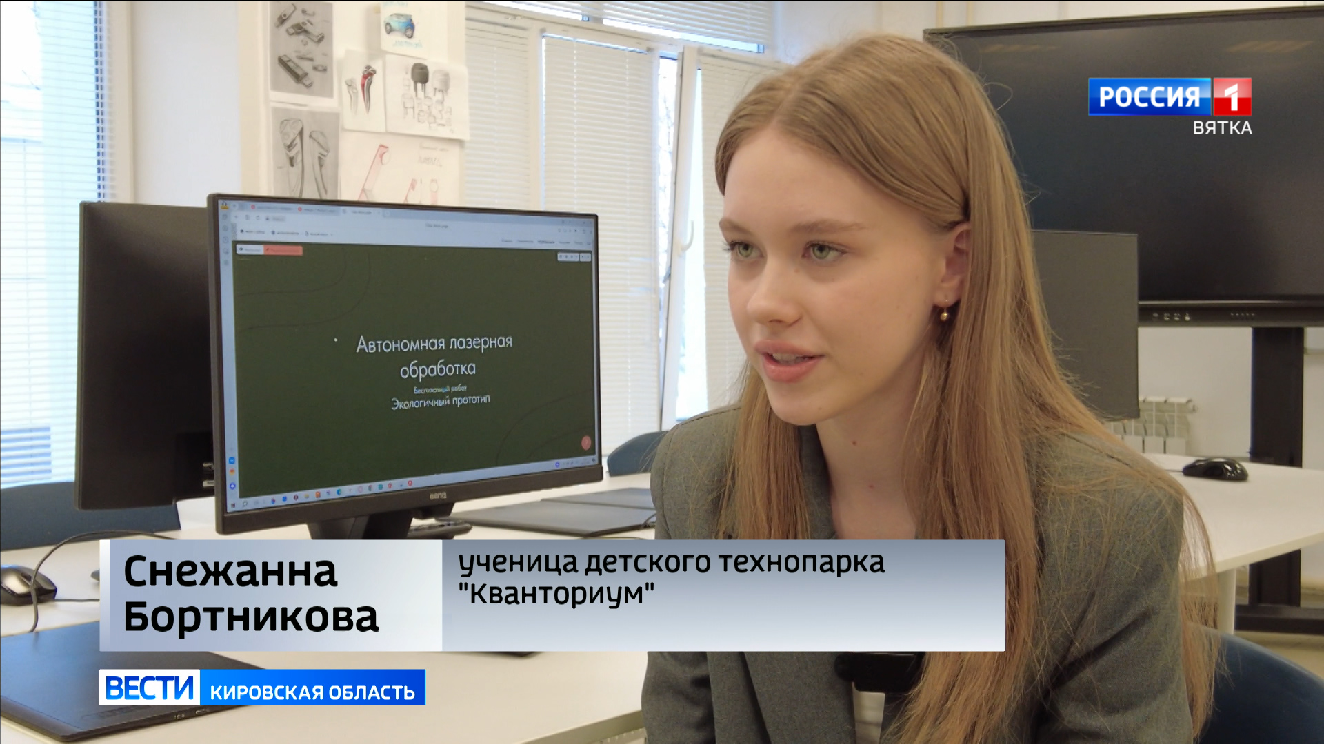 Это Маша Лагун. Нашей съемочной группе она рассказывает про дрон-агроном с лазером от сорняков. Большая командная разработка учеников кирово-чепецкого кванториума - машина, с помощью которой сорняк будут уничтожать лазером - ноу-хау для современной сельскохозяйственной отрасли. Пока в миниатюре, но то ли еще будет.