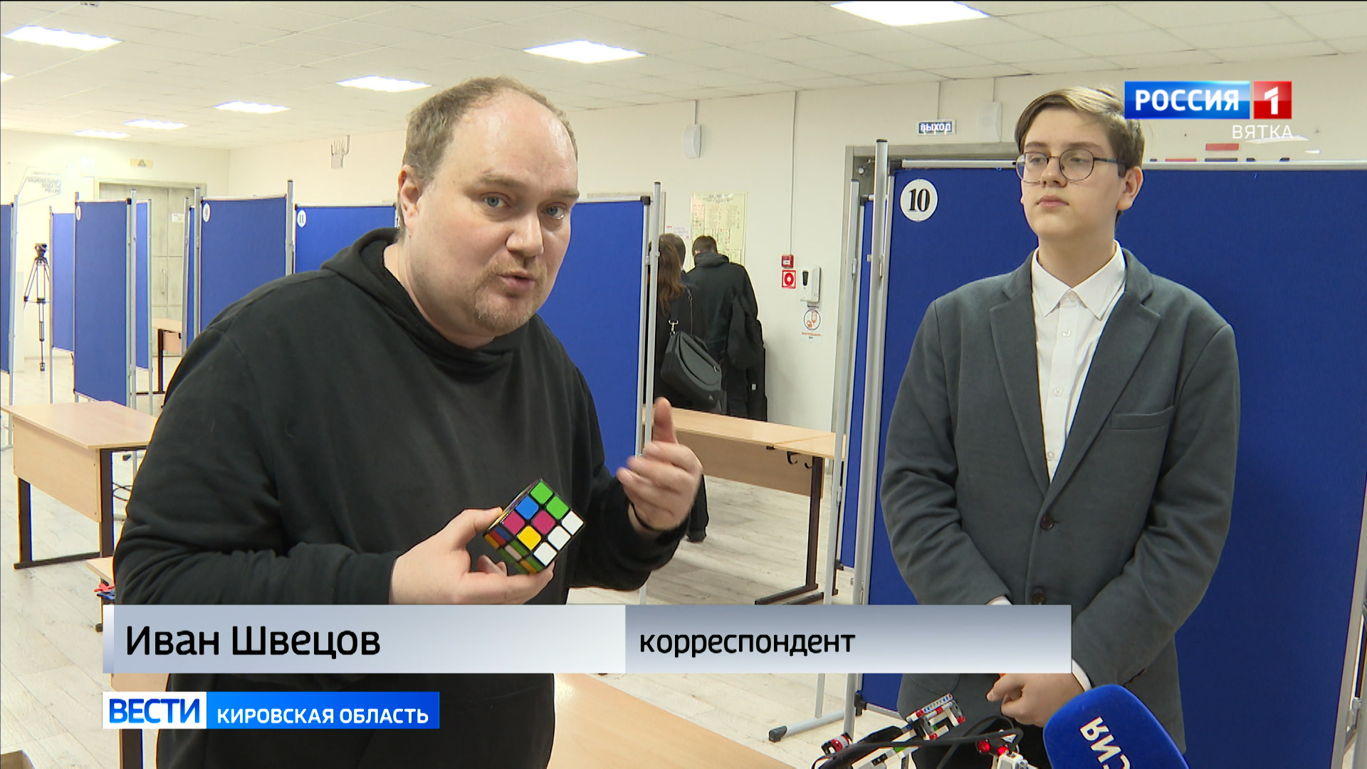 «Никита Шабардин из физматлицея создал робота, который умеет собирать кубик-рубика. Я сейчас попытаюсь максимально запутать эту головоломку, да она и так запутана, кладу ее в эту корзину».