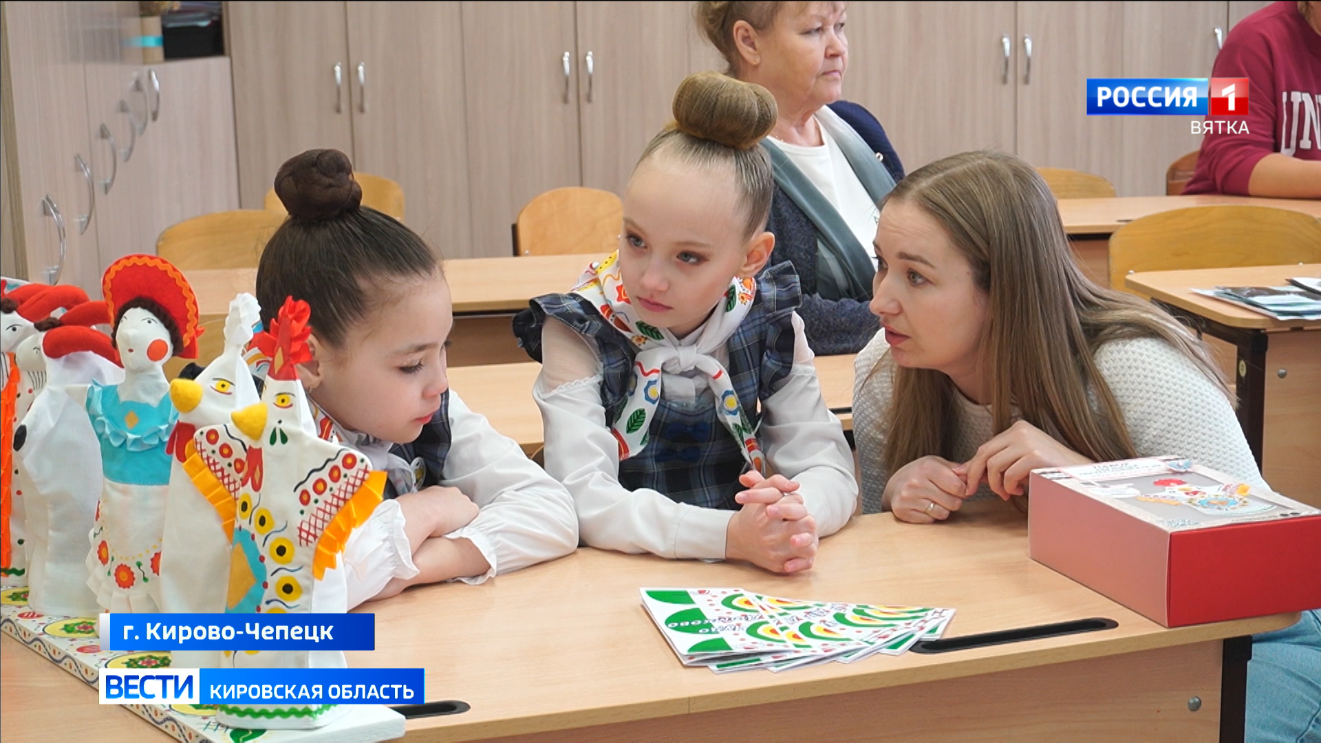 Ученицы третьего "Б" класса первой гимназии Кирово-Чепецка София Ильина и Анна Харламова на конкурс сшили несколько театральных кукол в дымковском стиле. Сперва нужно было изучить сам стиль дымковской игрушки, понять, какие элементы её определяют и какие формы обычно изготавливаются. Потом уже начался сам творческий процесс.