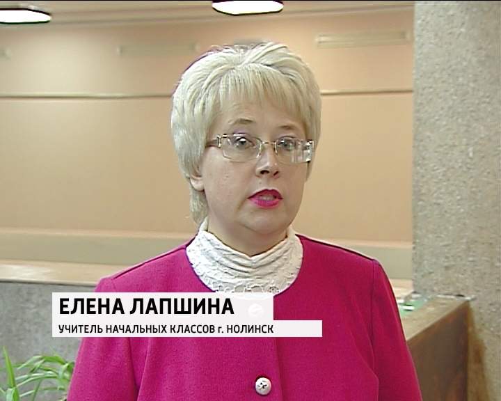 На торжественном собрании восемь учителей области были награждены премией Президента и тридцать три педагога получили премию Правительства Кировской области в рамках нацпроекта "Образование". Среди награжденных и Елена Лапшина - учитель начальных классов из города Нолинска. Уже второй раз она удостаивается высокой награды от Правительства области.