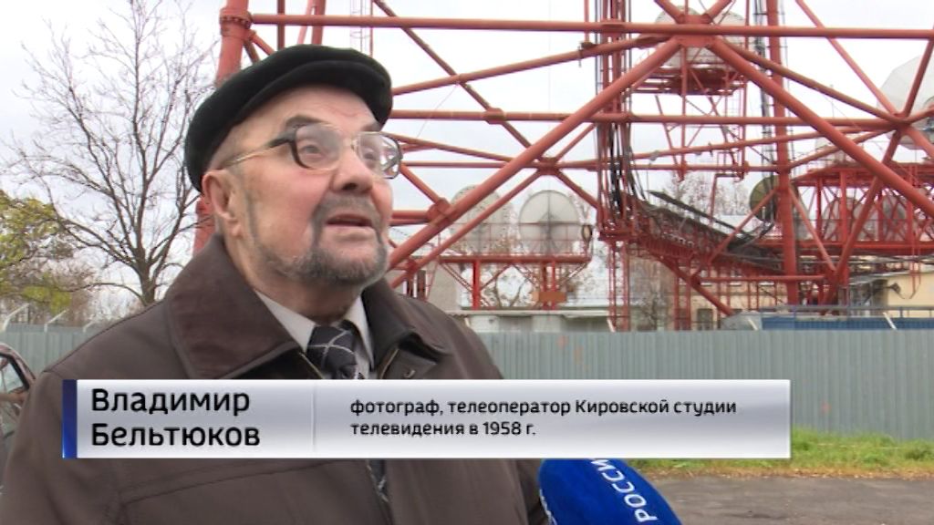 В мае 1957 года телецентру выделили металл для башни с Днепропетровского металлургического комбината. За образец конструкции были взяты нефтяные вышки. В августе 1957 года начался монтаж. За строительством пристально следили все кировчане. Владимир Степанович Бельтюков в то время был внештатным фотокорром газеты «Кировская правда» - и он стал первым представителем СМИ, кто побывал на конструкциях строящегося гиганта. До точки съемки пришлось добираться по лестницам более тридцати минут. Сверху и снизу фотокорреспондента страховали опытные высотники.