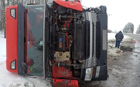 Здесь столкнулись грузовой автомобиль «Скания» с полуприцепом и «Ситрак». Оба транспорта перевернулись, водители травмированы.