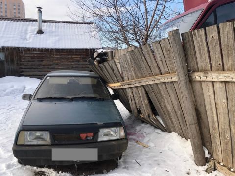 От столкновения «ГАЗЕЛЬ» отбросило на забор, который, в свою очередь, упал на стоящий автомобиль ВАЗ-2109.